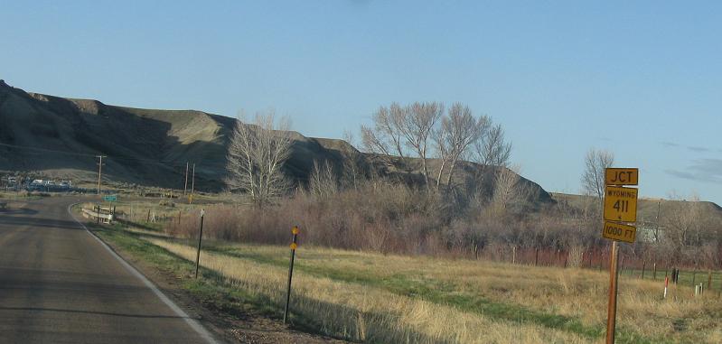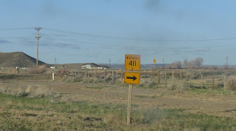Turn right for WYO 411, a short spur to Millburne. Stay straight to head to Robertson
