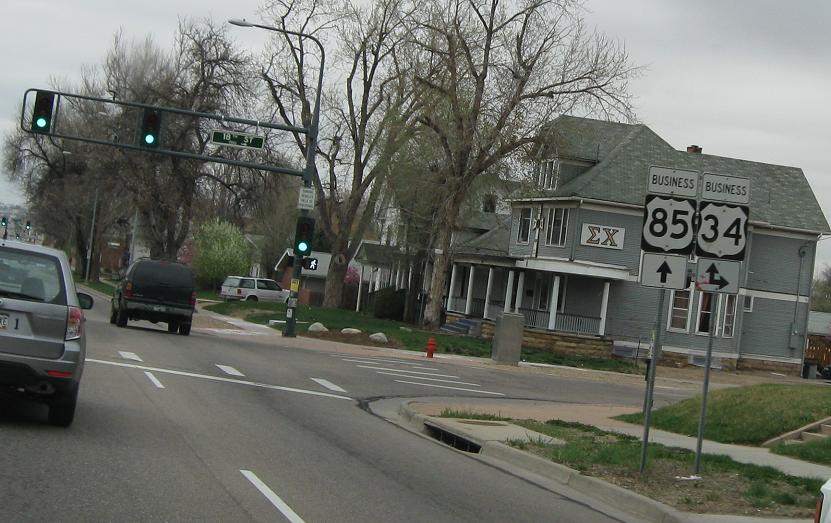 We come to our junction with US-34 Business. Turn right for 34 Business east out towards East Greeley and US-34 East, stay straight for 34 Business west/85 business north which will head into downtown Greeley concurrent with each other