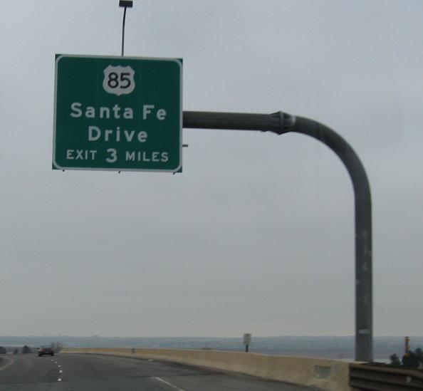 Junction US-85 coming up in 3 miles, but westbound SH-470 will interchange with SH-75 first