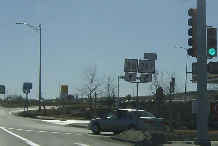 Stay straight to follow SH-121 south TO US-36 (the TO omitted in the picture), and turn right to trumpet around and head east on US-287 South