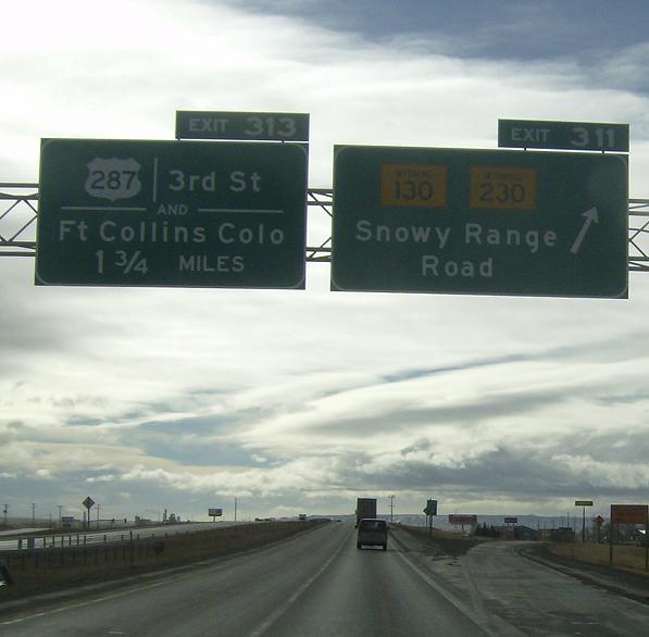 WYO 130/230 exit. This is the only instance of 2 concurrent state routes in the state.