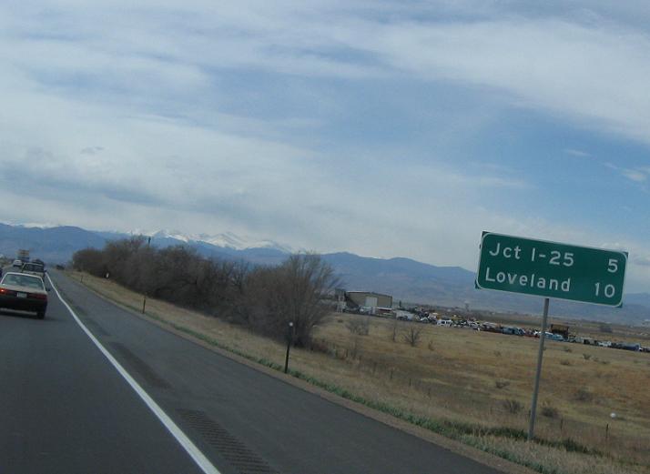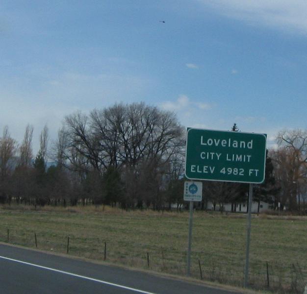 Despite the previous sign’s statement that Loveland doesn’t approach until 5 miles AFTER I-25, we’ll actually come to it about a mile BEFORE I-25