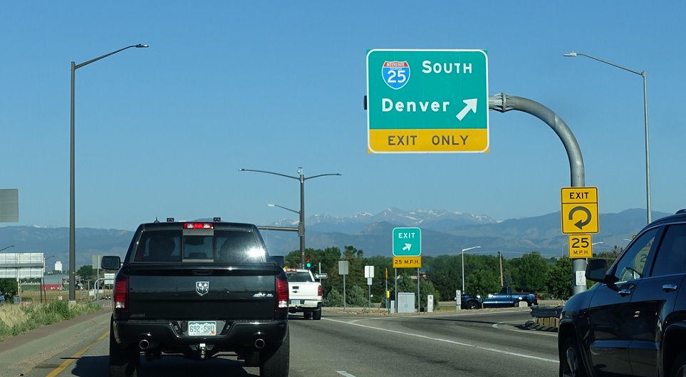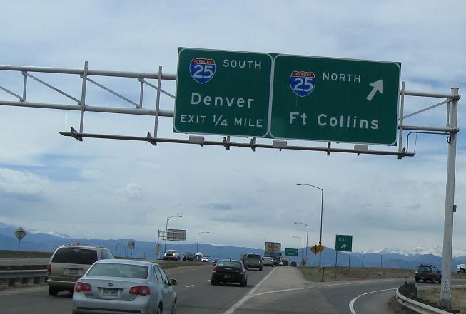 We’ll exit right for I-25 North, and then exit right again in a third of a mile for I-25 South in this clover interchange