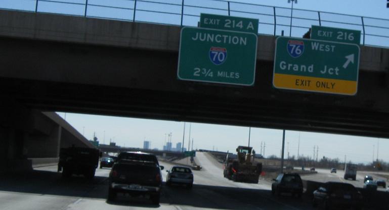 Exit for I-76 west. We’re coming up on junction I-70 here in a couple and three quarter miles