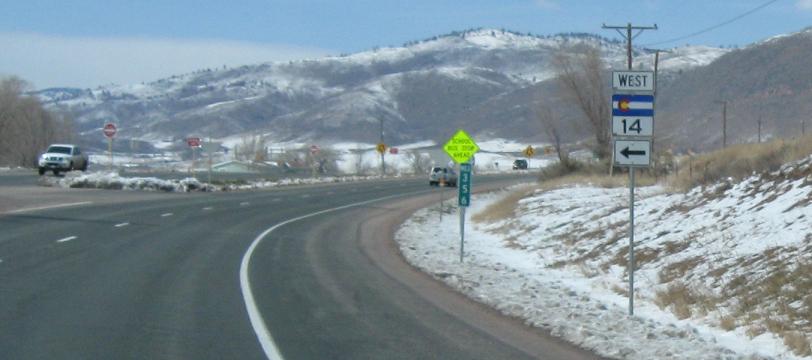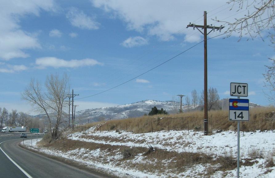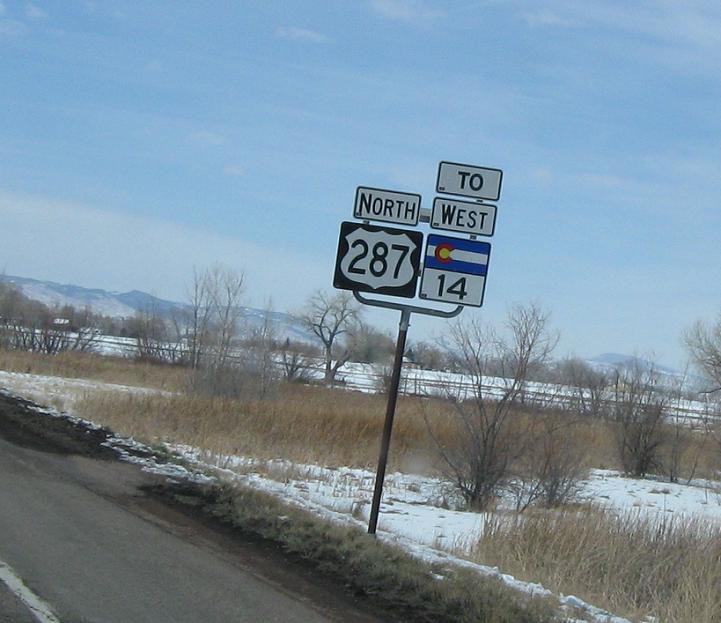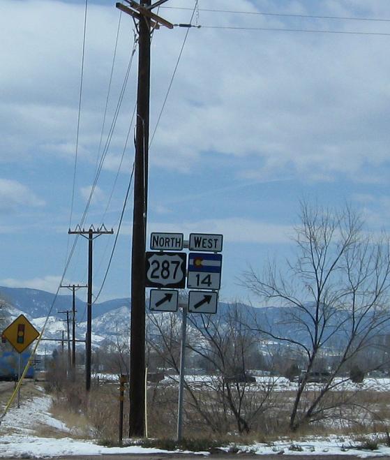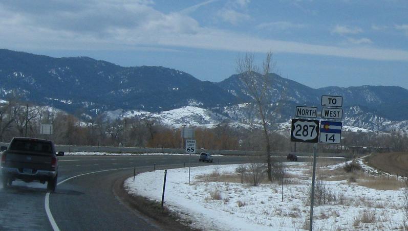 SH-14 will continue west through the Poudre Canyon, 287 will continue north towards Laramie Wyoming