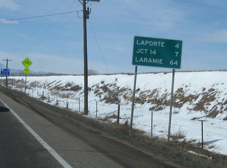 7 miles to the SH-14 split, 64 miles to Laramie Wyo