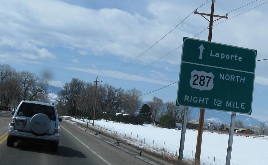 US-287 will turn north here in a half mile, or you can stay straight on old US-287 into La Porte