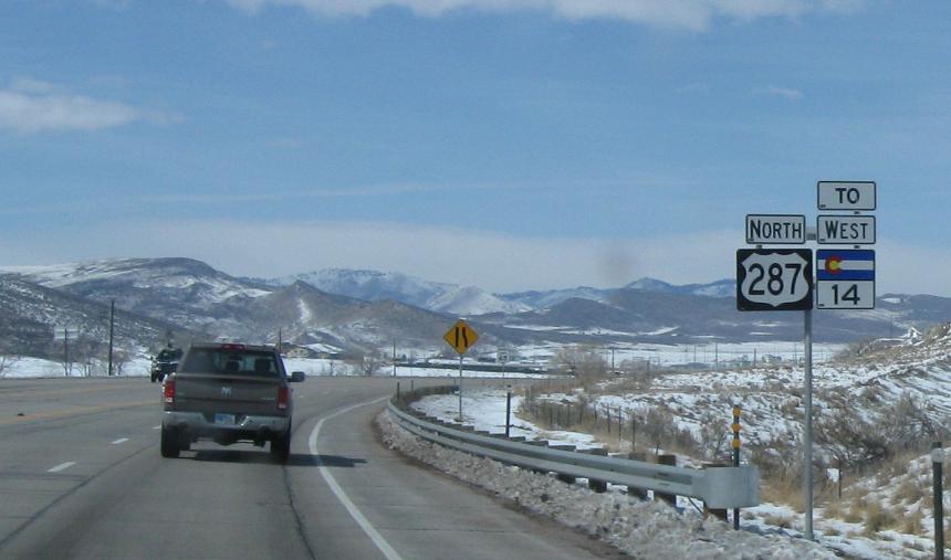 Exit right here in a second for 287 North/14 West towards Laramie and the Poudre Canyon