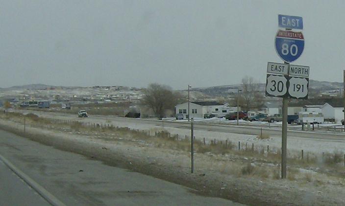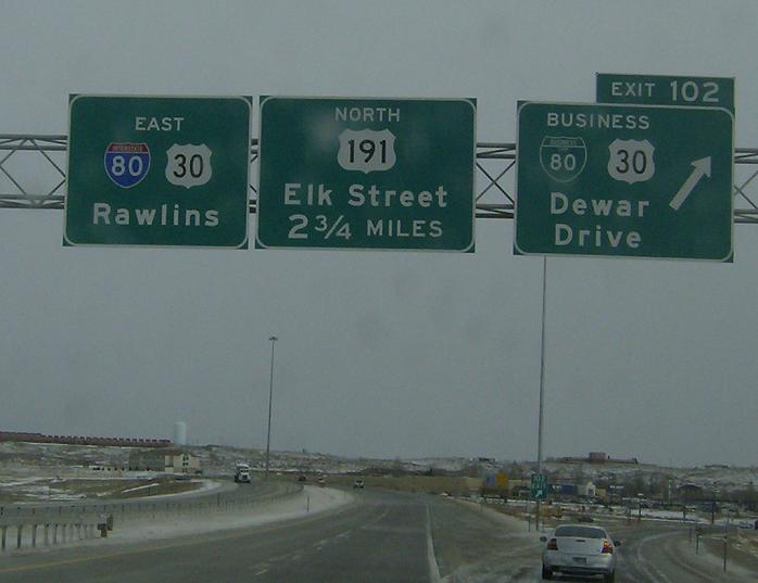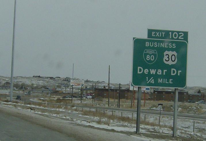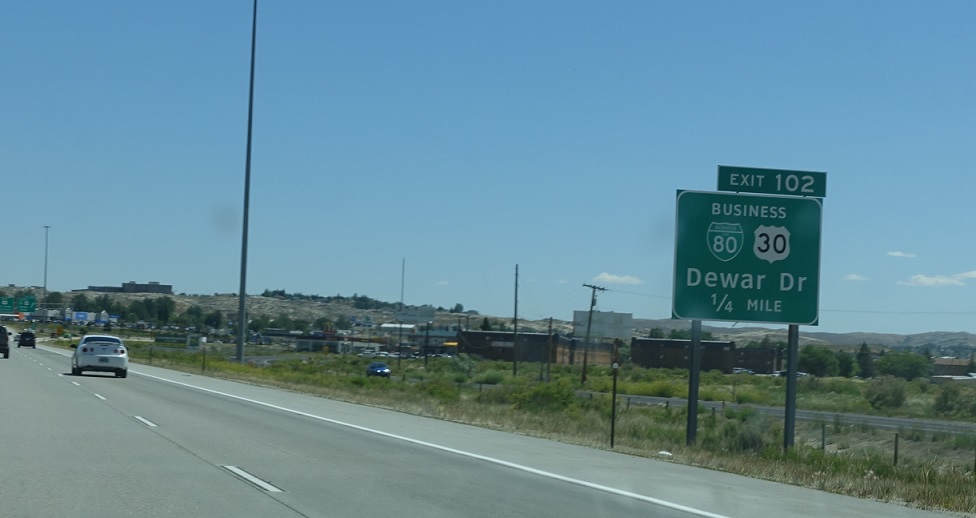 Business Loops exit in 1/2 mile, this is the first time Business 30 is mentioned (30 Bus is poorly signed through Rock Springs)