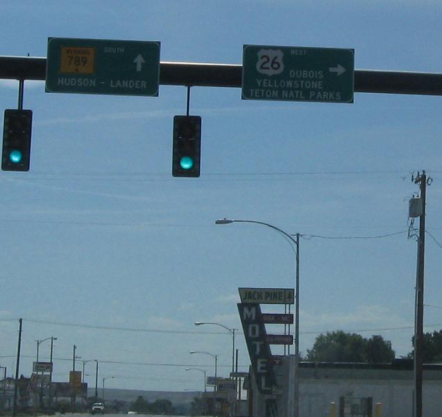 Turn right to follow US-26 towards Dubois and the national parks, stay straight for 789 which’ll continue down to Lander. This is the first time 789 will run alone, having been concurrent with US-310, US-14, US-16, US-20, and US-26