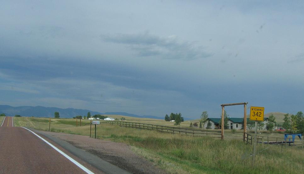 WYO 342 ends at US-87, which heads north into Sheridan where it rejoins I-90, and south towards Story via WYO 193