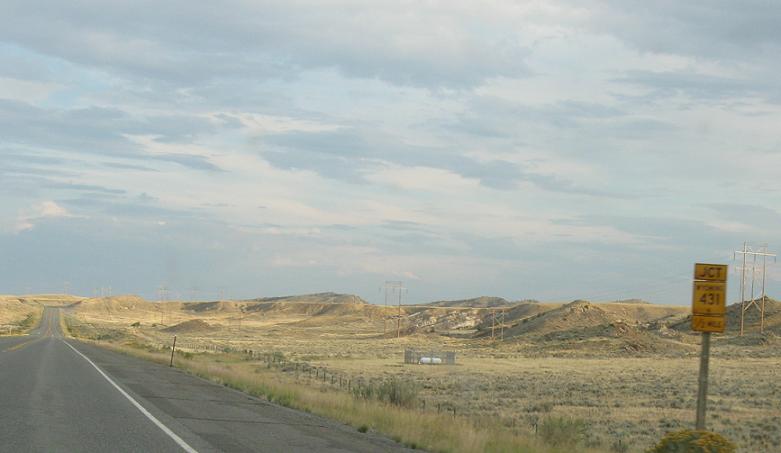 Junction Wyoming Highway 431 coming up in half a mile, which heads east towards Worland