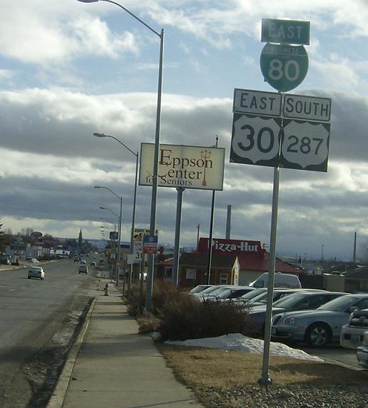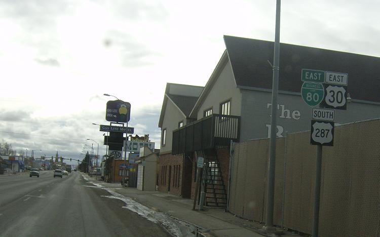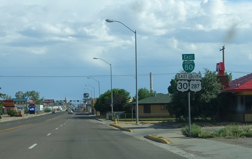 Reassurance shield proudly showing all three routes as I-80 Business joins US-30/287.