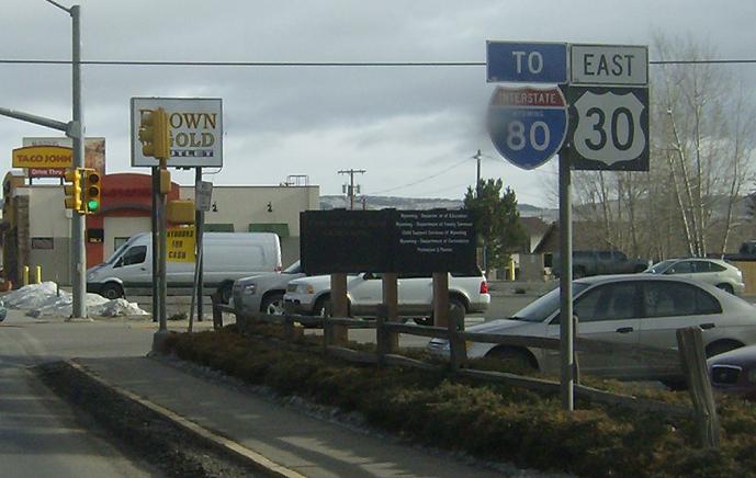 Follow 80/30 east to Cheyenne and 80 west to Rawlins. I-80 Business ends.