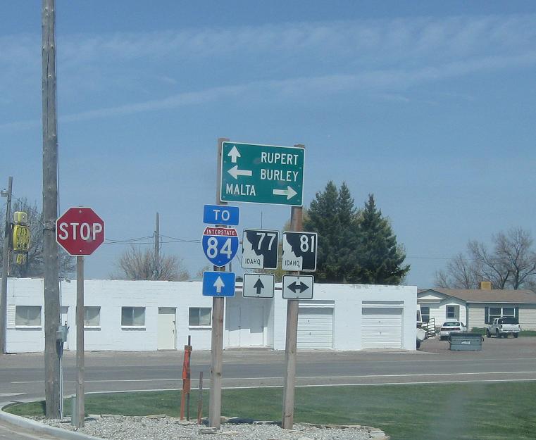 Turn left for 81 West towards Burley/Heyburn, Right for 81 South towards Malta, and stay straight for 77 North to I-84