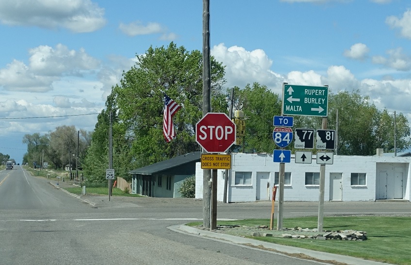 We come to a junction with Idaho 81, again. 81 heads east and south from here to Malta, while 77 heads south and east to Malta