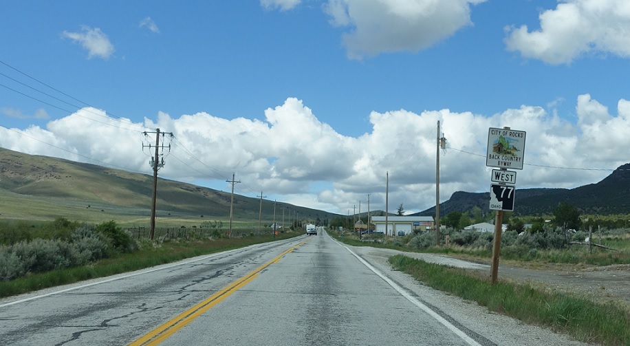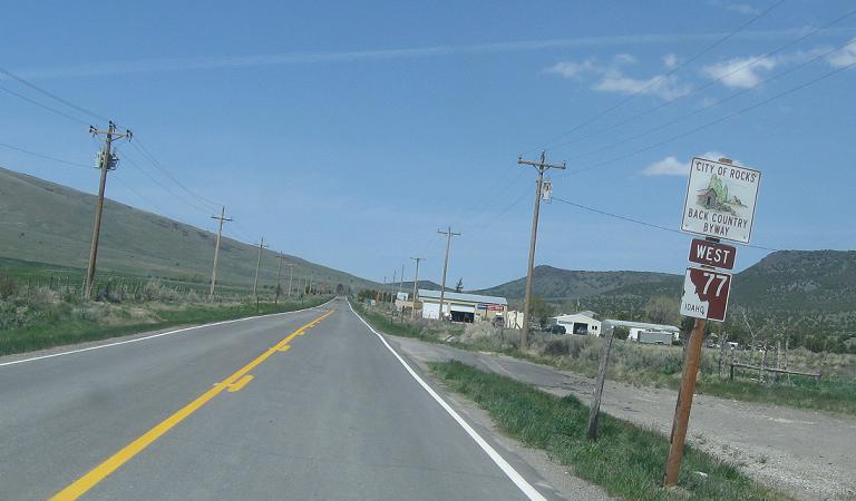Turn left to stay on Idaho 77, which will now ditch its brown shields as the scenic byway ends