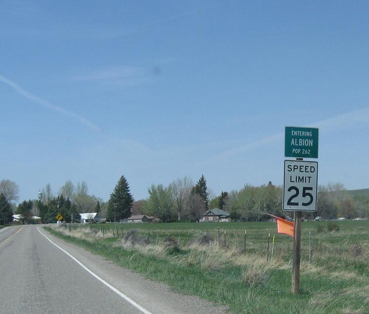 SH-77 enters the town of Albion