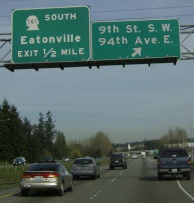 SR 161 S exits, heads to Eatonville and SR 7, and SR 161 North joins SR 512 East to JCT SR 167
