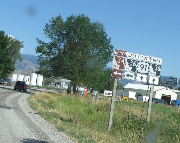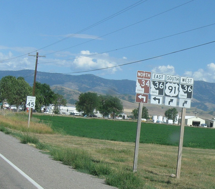 Turn left for 34 North/36 West. 34 North takes a circuitous path that eventually lands it in Wyoming’s Star Valley, near Freedom WY. Idaho 36 East heads to Montpelier, while 91 South and 36 West will head in to the main part of Preston