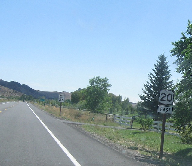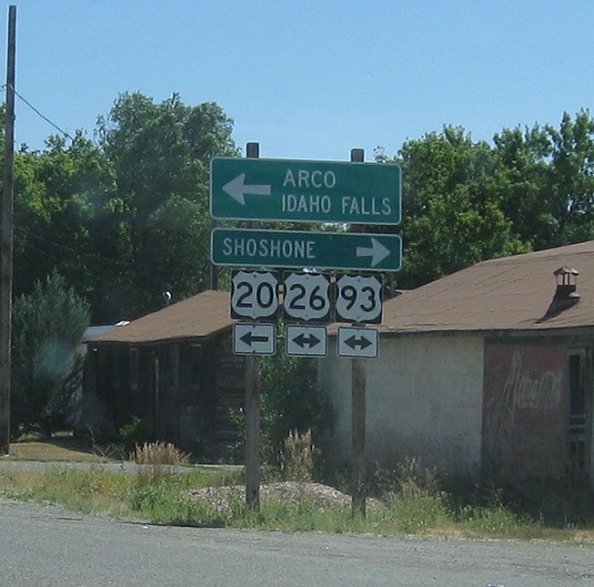 Follow 26 West and 93 South towards Shoshone and 20/26 West and 93 North towards Arco and Idaho Falls. 93 will stay with the concurrency until Arco, and then 20/26 will concur until several miles east of Arco, with 20 taking a direct route to Idaho Falls and 26 going to Idaho Falls via Blackfoot