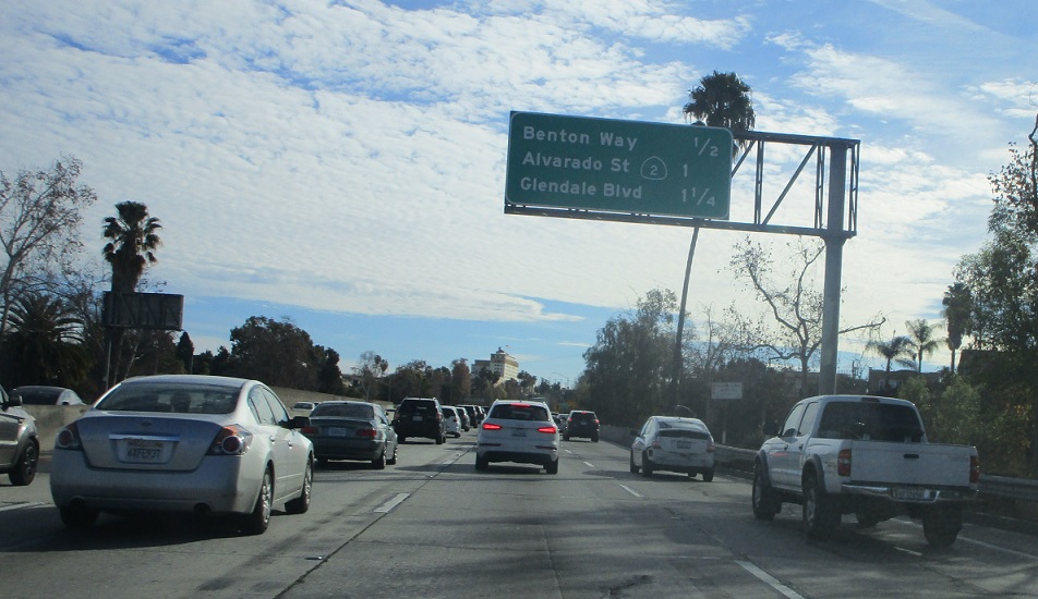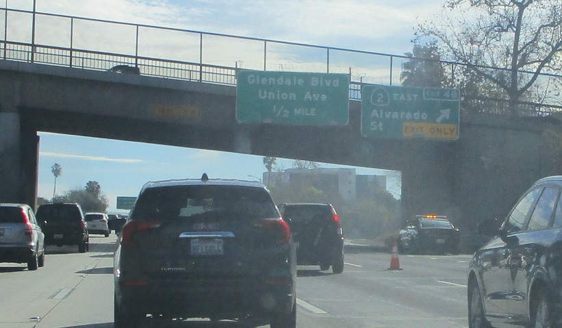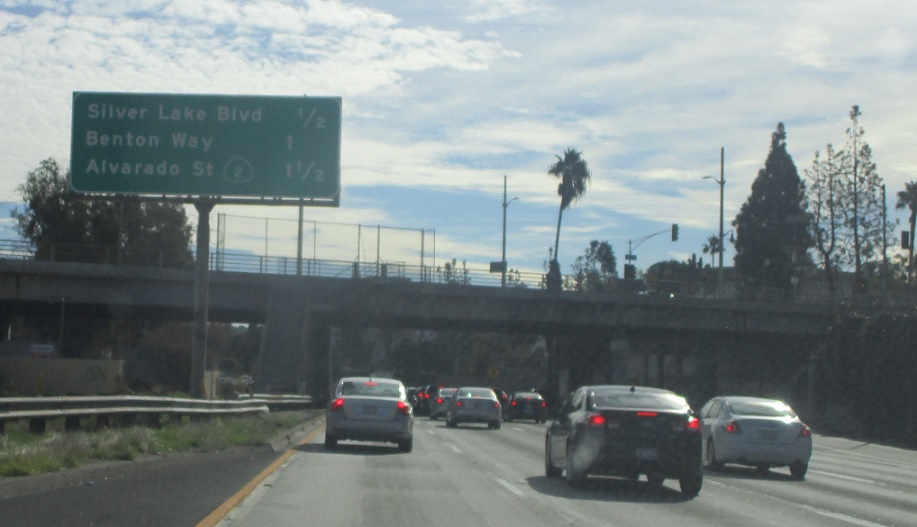 As SR 2 east joins, we’re 1.5 miles from its split at Alvarado St.