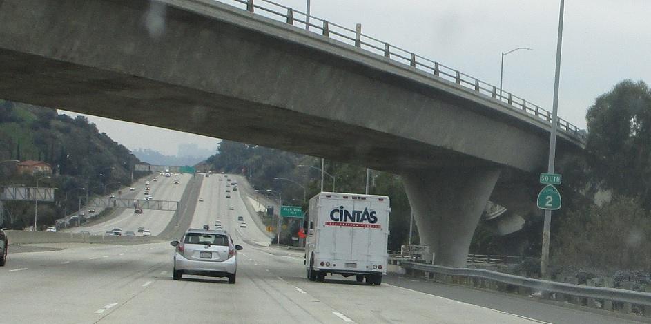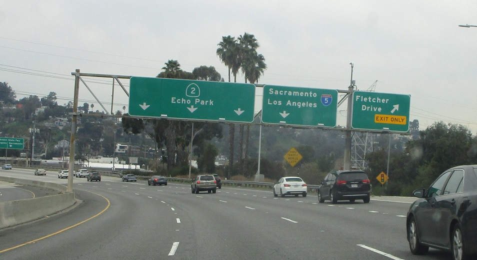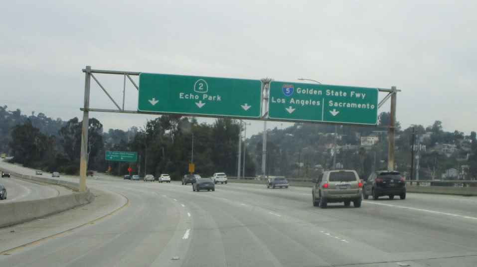 As we approach I-5, keep left for SR 2 south, which heads into the Echo Park neighborhood.