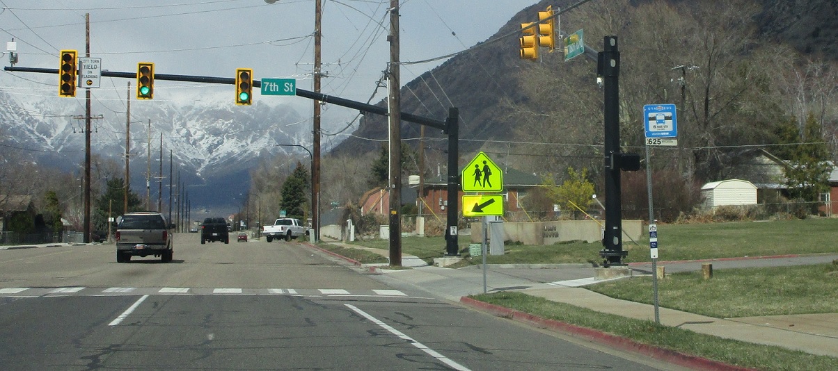 Turn right onto 7th St to enter the Utah School for the Deaf and Blind. SR-291 begins at the turn.