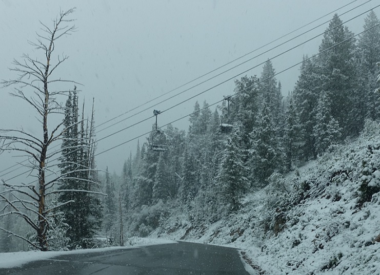 SR-224 passes under the Ruby Express Chairlift at Bald Mountain.