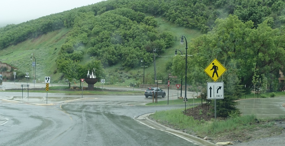 As we pass east of downtown Park City, we’ll approach another roundabout.