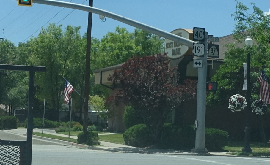 Turn left for 40 east/191 north and right for 40 west/191 south. SR-87 ends. These are some of the older shields in Utah.