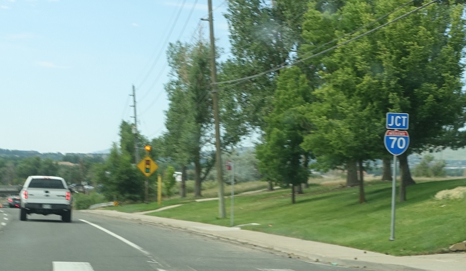 Turn left for I-70 west. Stay straight and turn left for I-70 east. SH-72 ends.