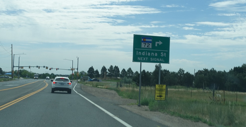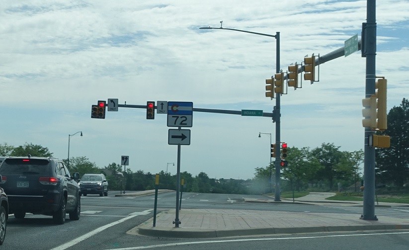 At the signal, SH-72 turns south onto Indiana Street and we’ll enter the Arvada street grid.