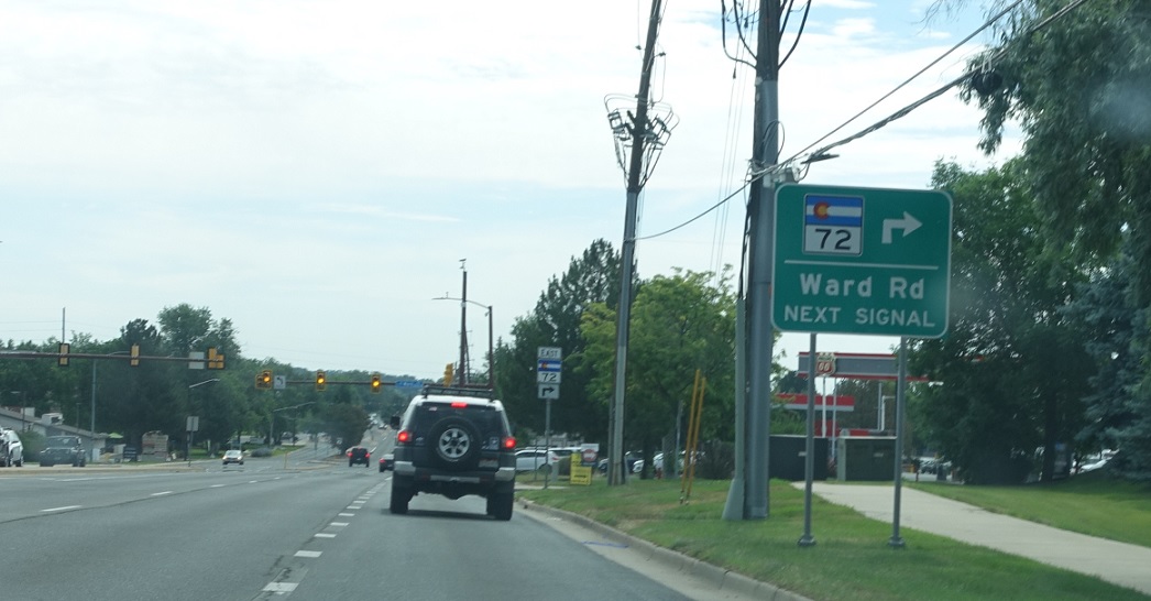 A couple miles later, SH-72 will turn east again onto 64th Avenue.