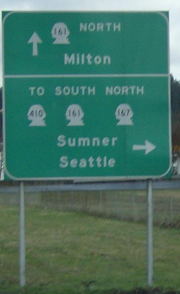 Right for SR 167 N/SR 161 S, heading to SR 512 which takes SR 161, and then SR 167 continues to SR 410