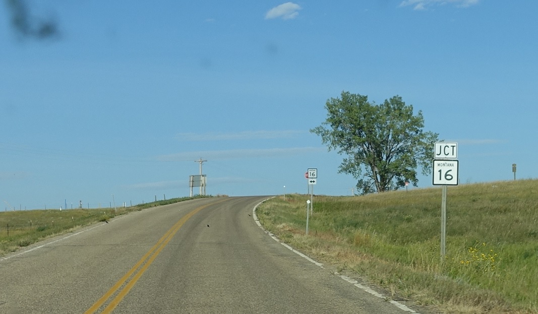 Turn left for MT 16 north and right for MT 16 south. Stay straight to stay on 258 east towards North Dakota.