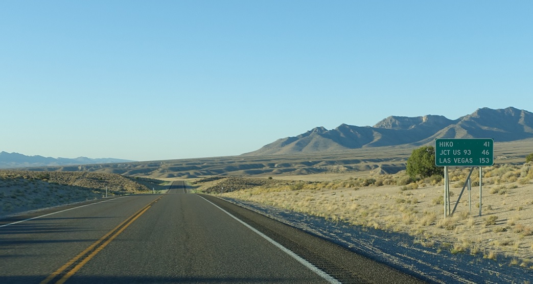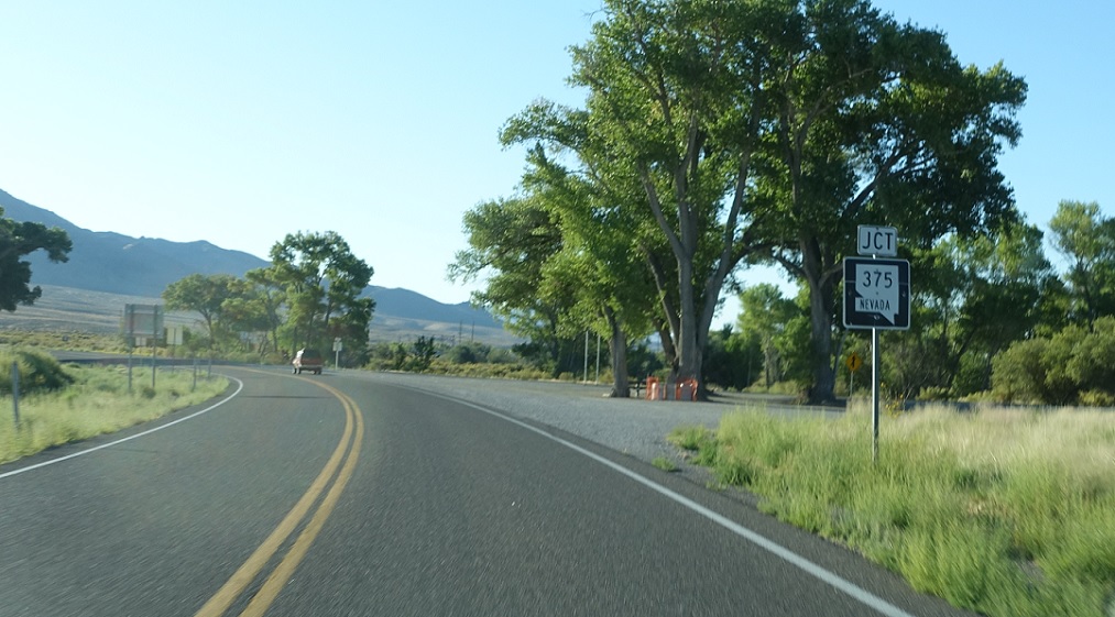 A few miles after that, we’ll approach the SR 375 Extraterrestrial Highway. Turn right for 375 west to Area 51 and Rachel, Nevada.