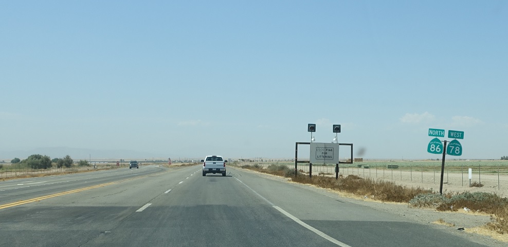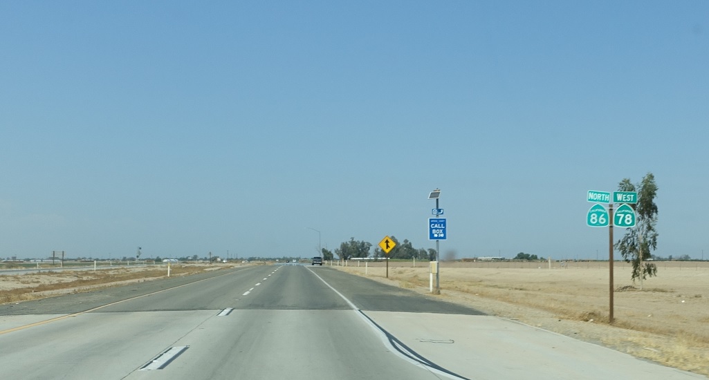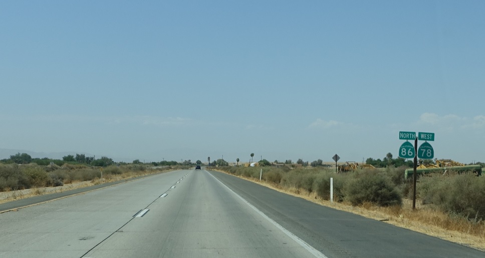 Reassurance shield as 78 joins 86. The two routes keep SR 86’s postmiles through the concurrency.