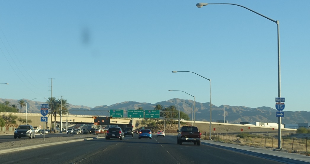 Follow 15/93 south to downtown Las Vegas and the Strip.