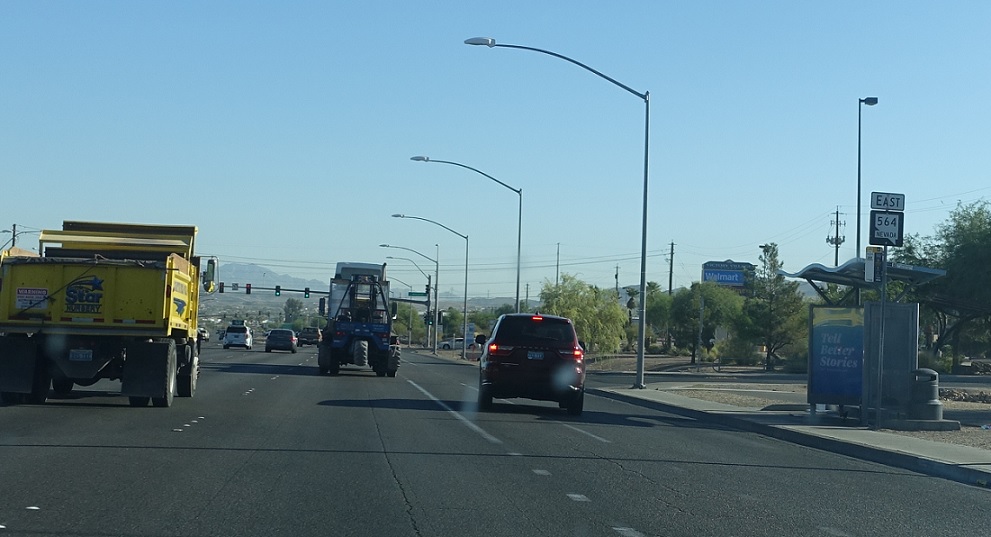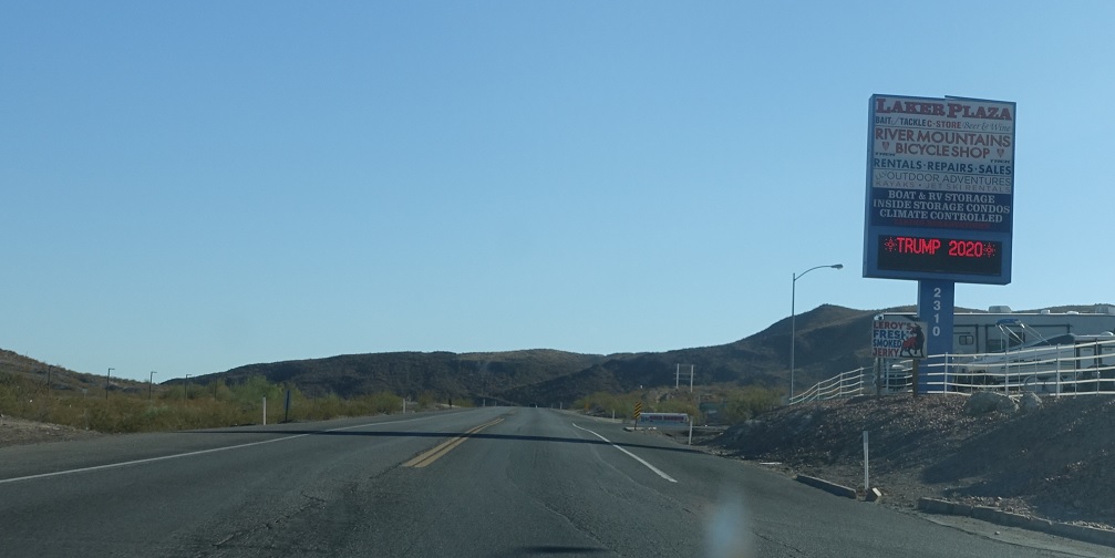 SR 564 drops down to two lanes as we head out of Henderson, and we get to…gross, people advertising orange blowhards on their business marquees.