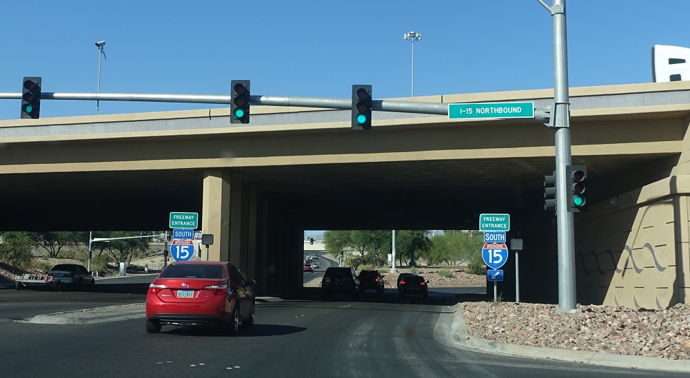 SR 147 continues just a smidge past I-15, but functionally you’re just keeping left for Lake Mead Blvd. Keep right for I-15 in both directions.
