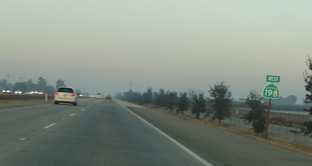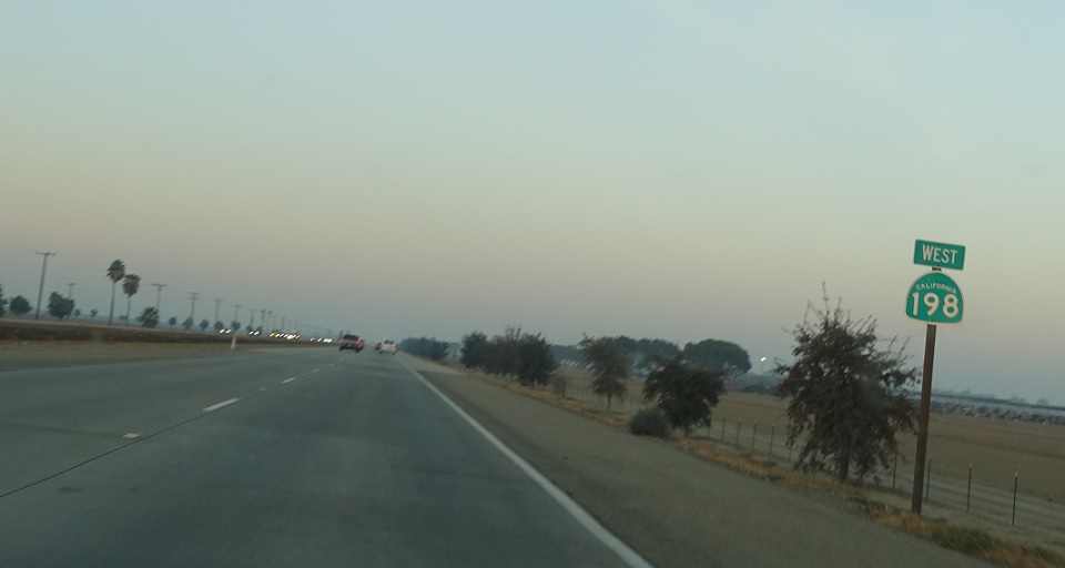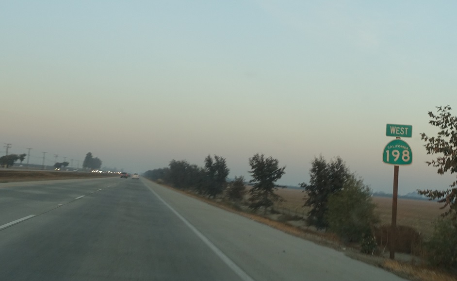 Reassurance shield after the Rd 68 junction as the freeway ends. SR 198 continues as an expressway through Hanford.