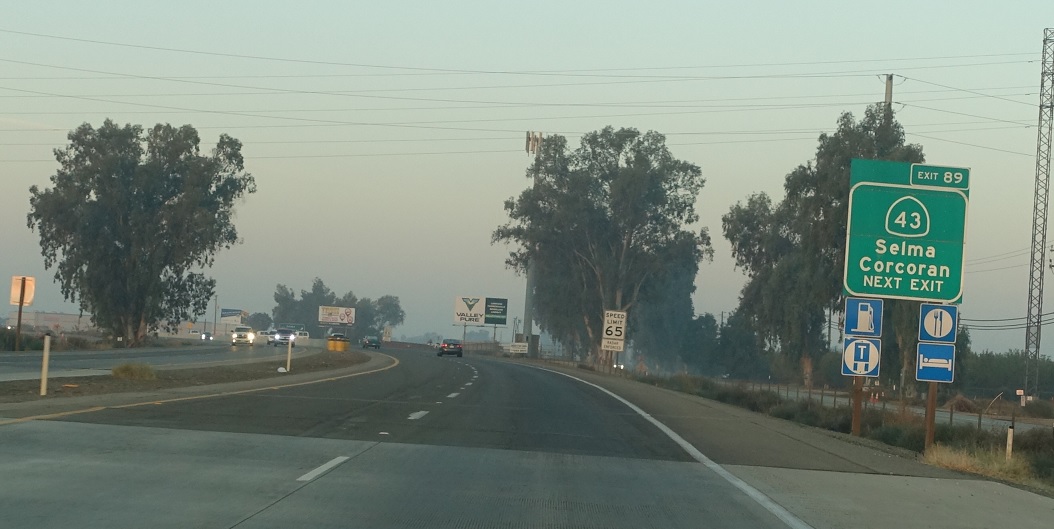 SR 43 heads north to Selma and south to Corcoran, the greatest city in the world.