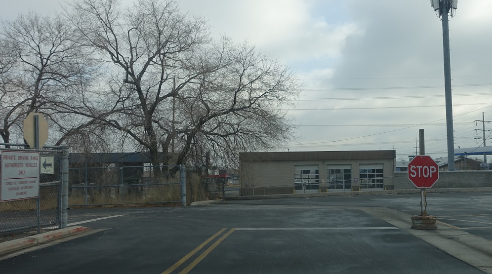 Heading along the west side of the building. I drove by on a holiday, when this was accessible without actually taking a road test.