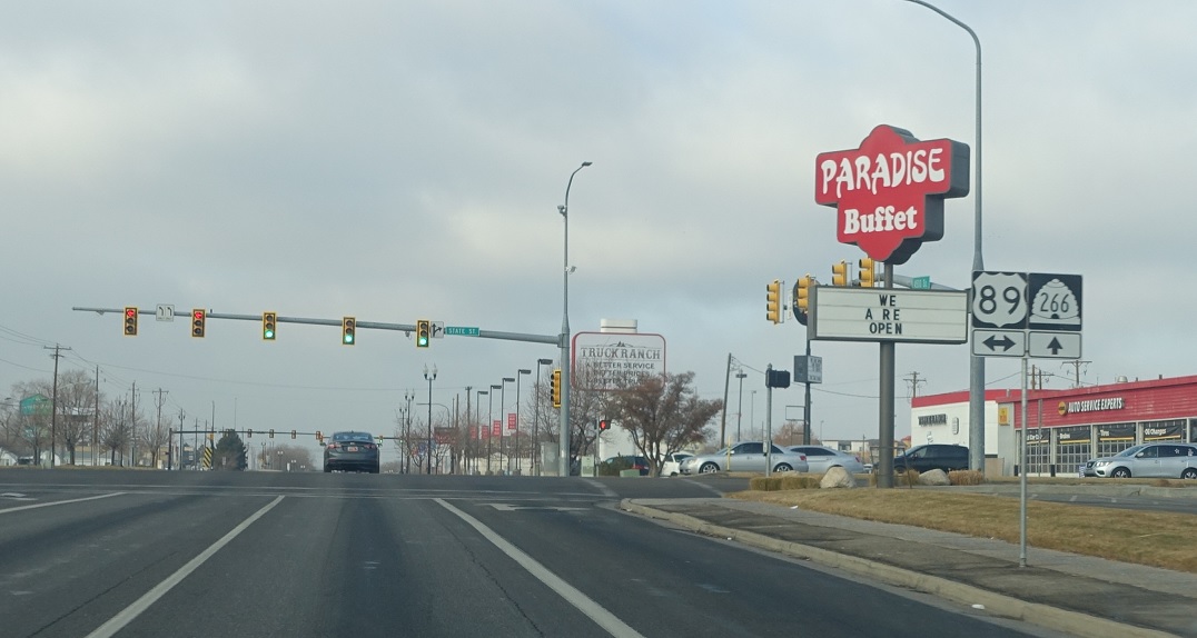Turn left for 89 south and right for 89 north. Stay straight for 266 west.