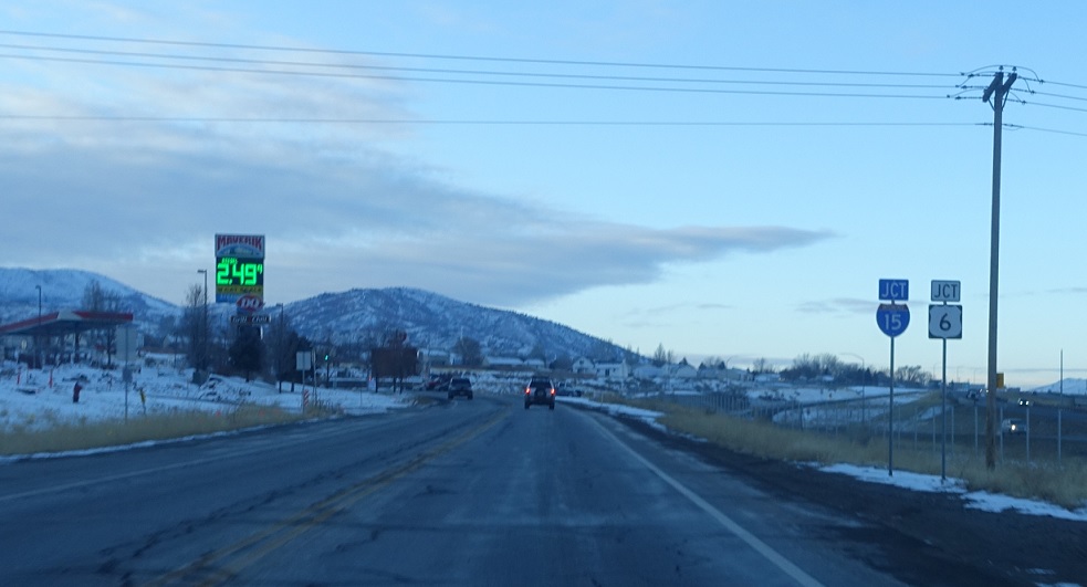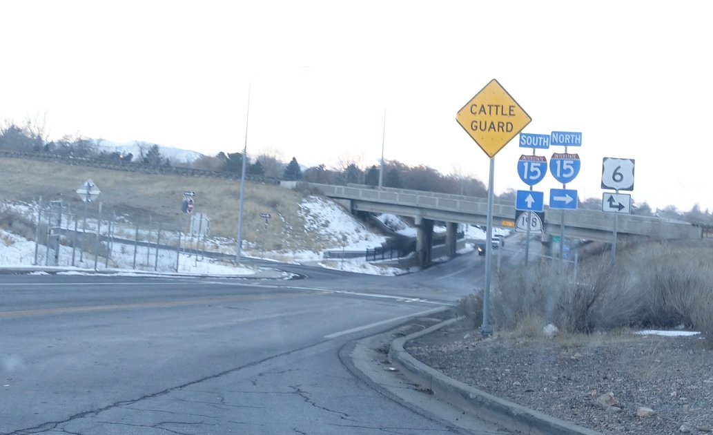 At I-15, turn right for I-15 north and US-6 east. Stay straight for 15 south and 6 west.