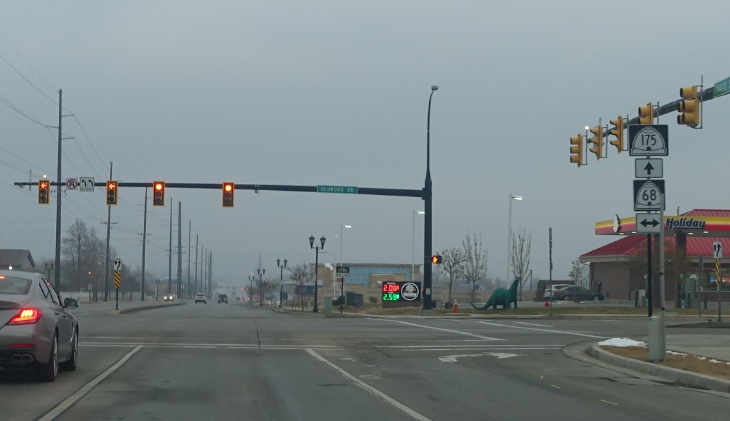 Turn right for 68 south and left for 68 north. Stay straight for 175 east.