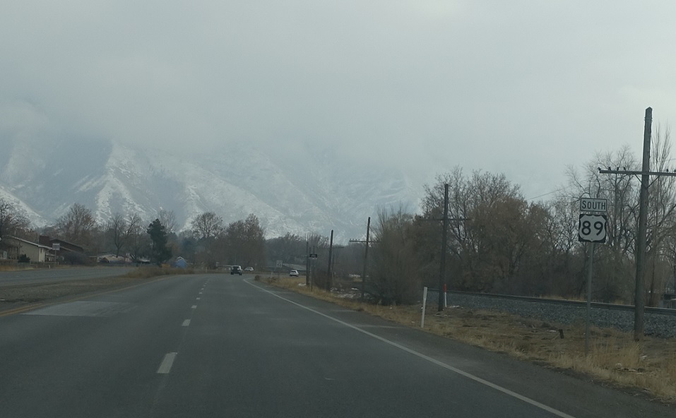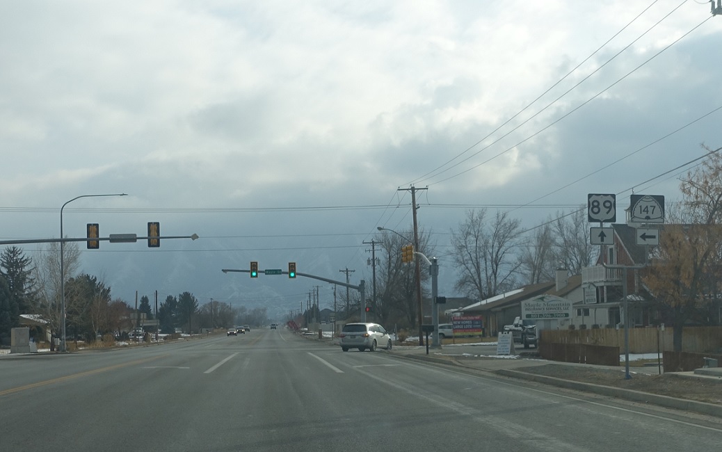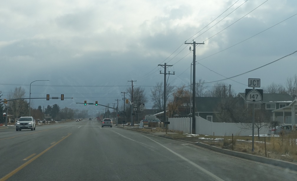 Turn left for SR-147, which is a convoluted sort of route, but the first portion of it serves as a sort of US 89 business loop through Mapleton. Stay straight for 89 south.