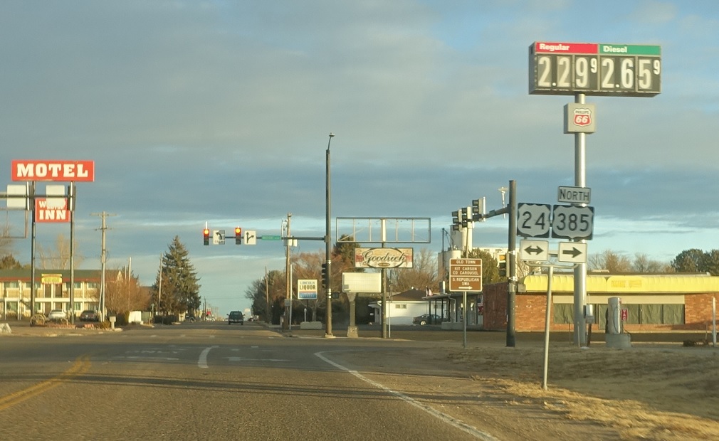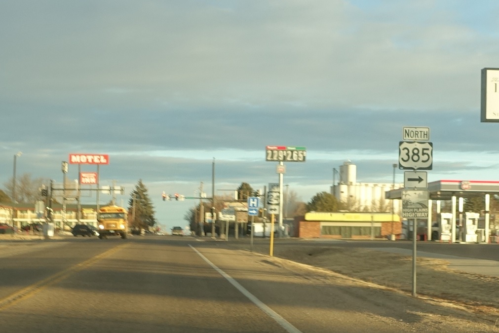 Reassurance shield for US 385 that omits the I-70 Business Loop entirely.