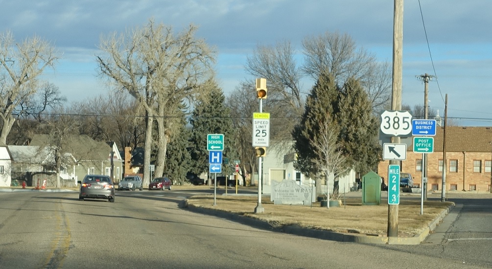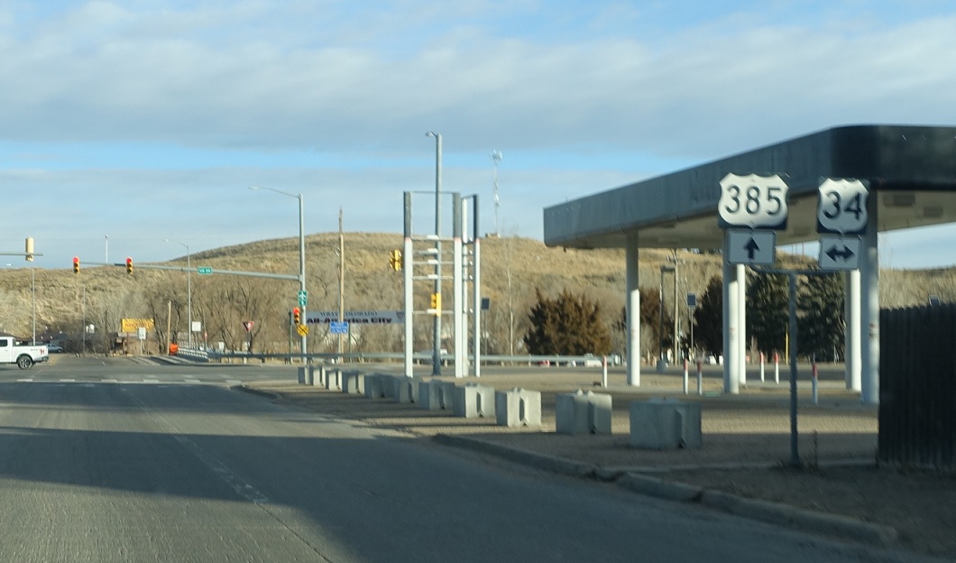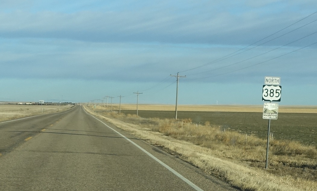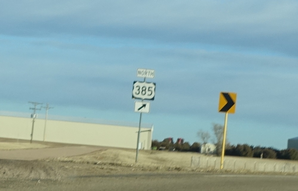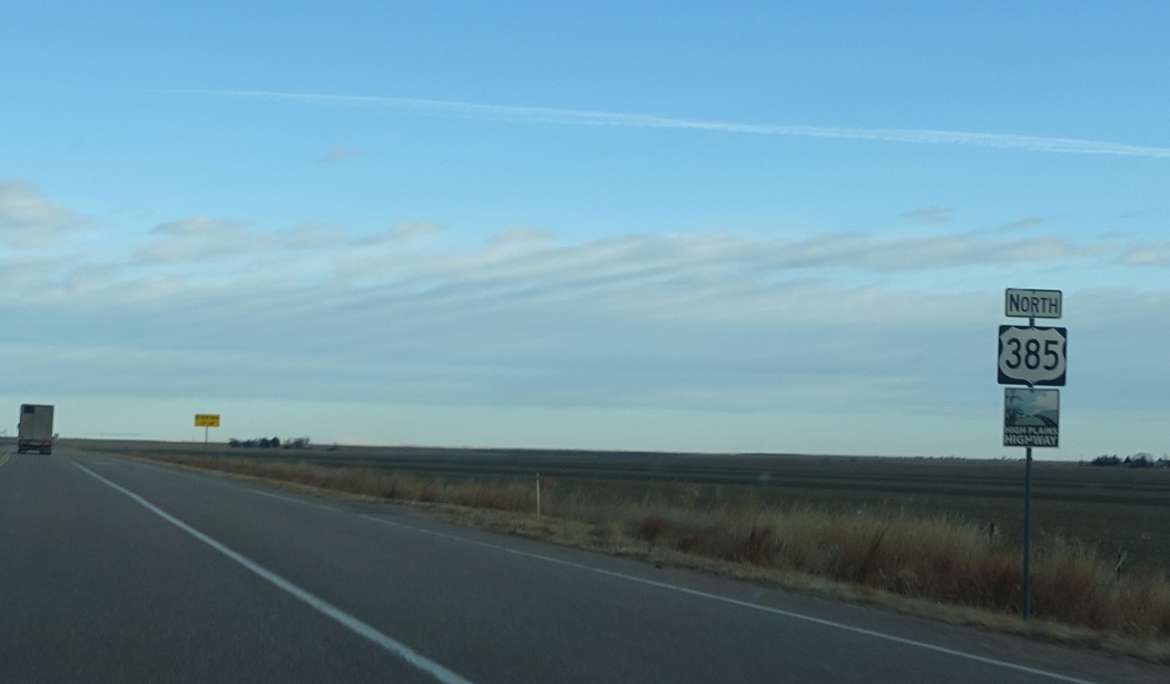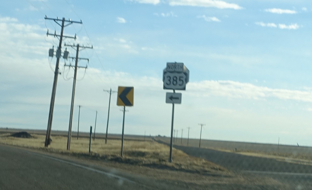 A few miles later, US 385 jogs east for a half mile to keep its alignment with the section lines.